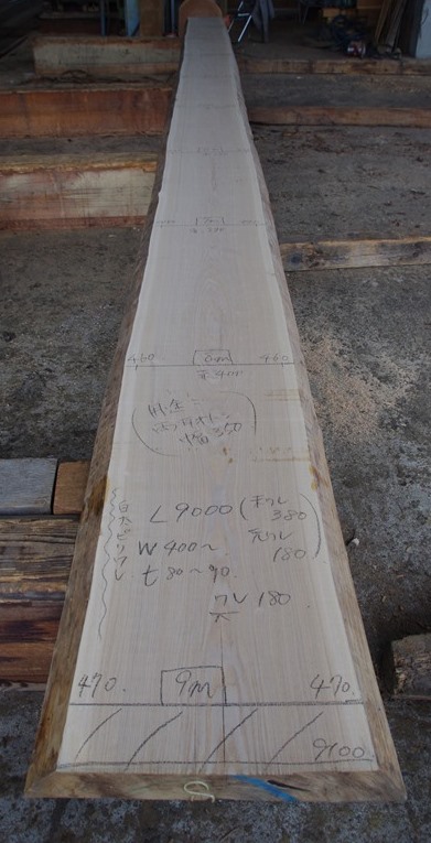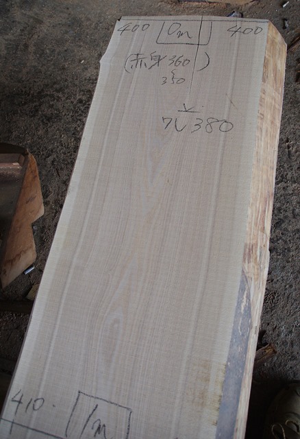- 状 態:荒木 / 特 徴:白木で人気のタモがこの長さで存在していました。 幅は狭めですが、同じ長さで幅足し用材あります(幅は自在、料金別途)。厚みも十分、希少性の割にはお値段控えめ。ご相談ください。割烹や日本料理店を始めるオーナー様必見です。 / 幅:末400mm ・元470mm / 含 水:約〜17%(2008年製材)
