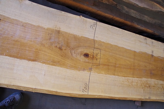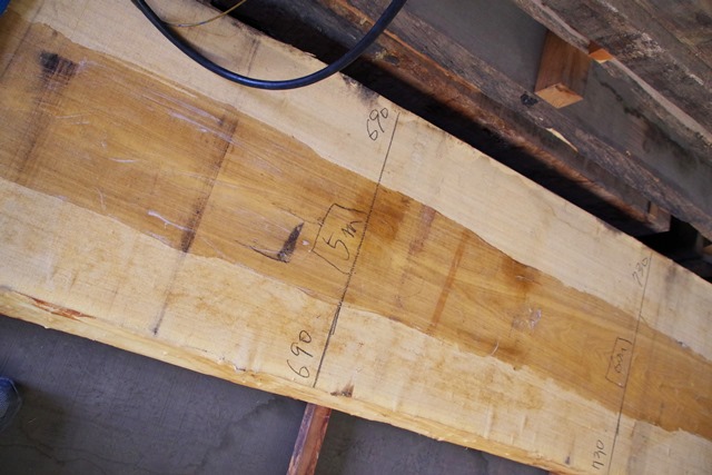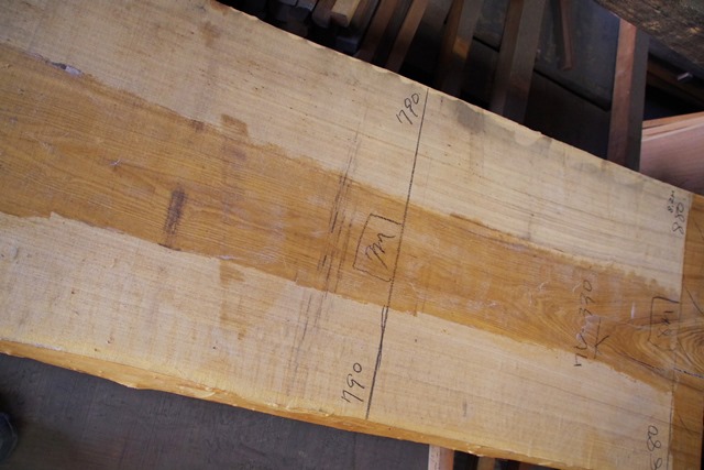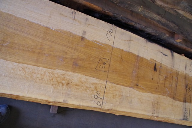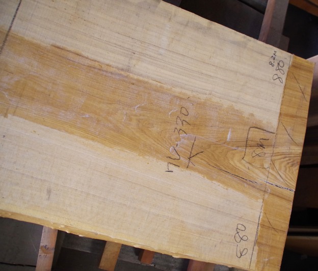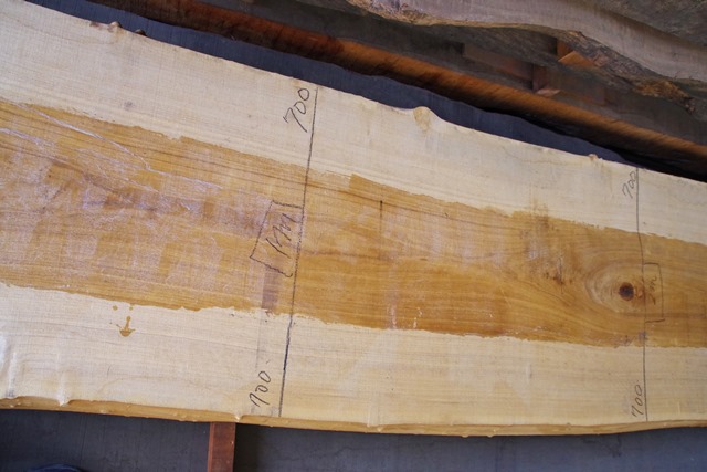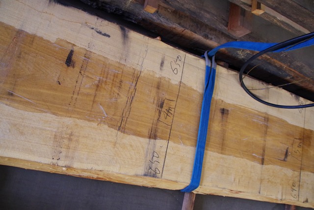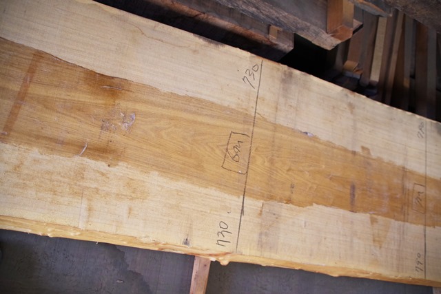 状 態:荒木 / 特 徴:貴重な8000mmづかいのタモ。耳もきれいです。傷も少なくたいへんな良材です。 / 幅:末740mm ・中650mm ・元880mm