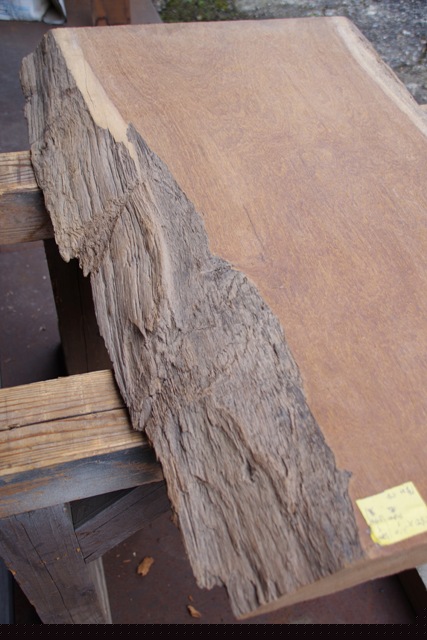 ワイルドな耳ときれいな木目のコントラスト。コンクリートと木材の組み合わせを一枚で表現しているかのよう。