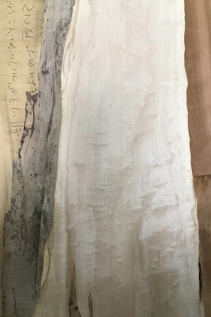 状 態:荒材 / 特 徴:トチの縮み(カーリー)はもういらない、違った杢がほしい、という方に。片耳。左の一枚は売り切れです。