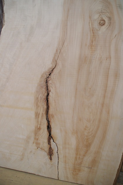 下部に入り皮と割れが見られます。座卓に仕上げるときは適宜処理します。