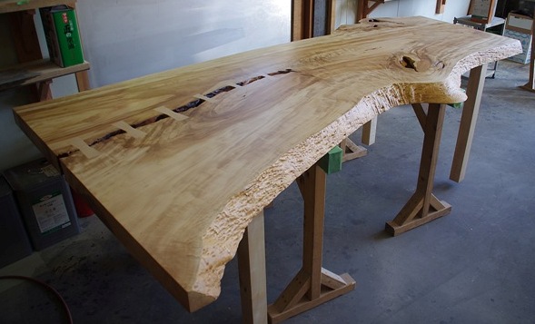 同じ丸太の木でテーブル(掘りごたつ)を作ったことがあります。