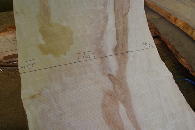 末から1000mm部。ここでも白太が多いきれいな板です。
