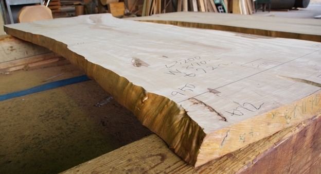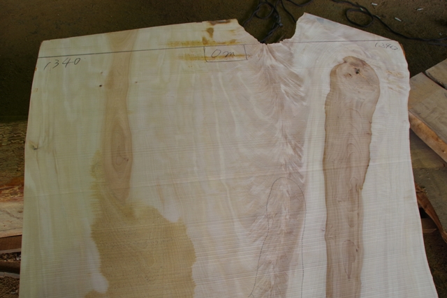 状 態:荒材 / 特 徴:幅の狭いところでも870mmで長さが3100mmの巨大トチ。トチ好きで大き目のテーブルをお探しでしたら一度ご覧にお越しください。 / 幅:末1340mm ・中870mm ・元950mm / 2009(H21)年製材