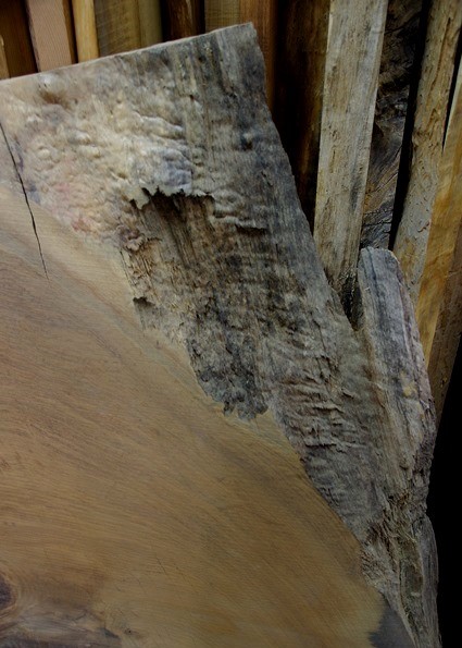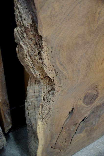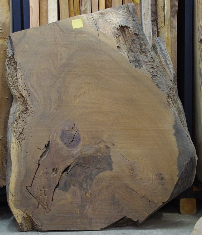状 態:荒木。 / 特 徴:輪切りではない、しかし丸テーブルに適した形。看板・オブジェにもアピール度の大きい一枚です。 / 幅:元1100mm / 長期乾燥済み