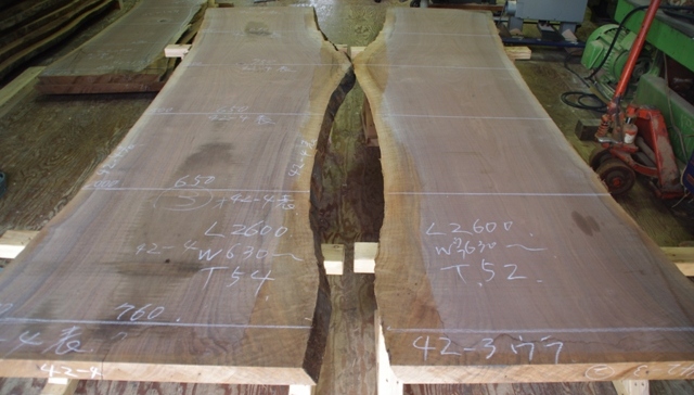 色も良く綺麗なウォルナットです。耳は適宜手を施します。