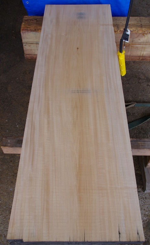 裏面は割れがあります。割れの深さは約20mm。 余裕を見て裏から30mm削り落とすとして仕上がりは70mm程度とお思い下さい。